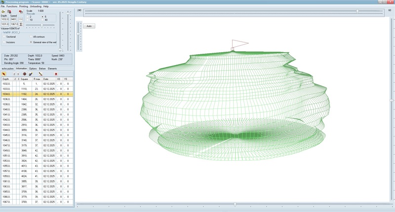 После обработки данных можно проверить форму скважины и провести сравнения с предыдущими измерениями. |
